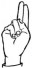 На ћирилици написано ДИНА БРДАРИЋ састоји се из 11 слова [?]. Исписано ћириличном једноручном азбуком за глувонеме: